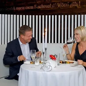 Schweizerische Speisen können im Restaurant Hardegg in 450 Meter Entfernung bestellt werden.