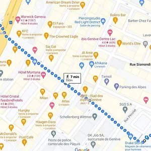 Aeroporto Internacional de Genebra está localizado a 0.5 km de distância, enquanto estação de ônibus Monthoux está a 100 metros de distância.