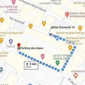 O apartamento está situado no bairro de Downtown de Genebra, que fica a 15 minutos a pé do centro da cidade. Está a cerca de 550 metros Banhos des Pâquis e também próximo de Ponte de Mont Blanc. Servindo cozinha francesa para os hóspedes, o Bistrot du Boeuf Rouge é de 100 metros de distância.